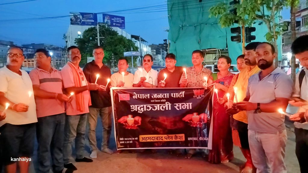 भारतको अहमदाबादमा हालै घटेको विमान दुर्घटनामा ज्यान गुमाएका पीडितप्रति नेपाल जनता पार्टी, पर्सा जिल्ला समितिले दीप प्रज्वलन कार्यक्रममार्फत श्रद्धाञ्जली अर्पण गरेको छ।