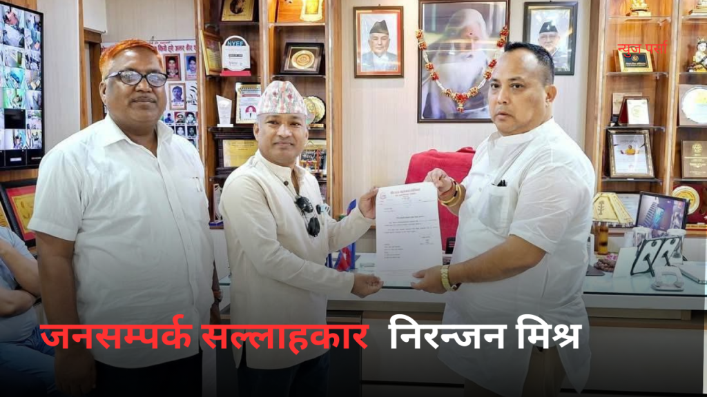 वीरगंज महानगरपालिकाका प्रमुख राजेशमान सिंहले निरन्जन मिश्रलाई आफ्नो जनसम्पर्क सल्लाहकारमा नियुक्त गरेका छन्। मेयर सिंहले बिहीबार आफ्नो कार्यकक्षमा एक कार्यक्रमकाबीच मिश्रलाई नियुक्तिपत्र हस्तान्तरण गरेका हुन्।